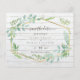 Das moderne Hochzeitsgeschirr ist mit einem weißen, tropfenden Holzhintergrund mit hübschen wasserfarbenen, grünen Salbei-Blätter und goldenem geometrischem Rahmen versehen. Teil einer größeren Kollektion mit günstigen Hochzeitseinladungen, speichern Sie die Daten, uAwg, Labels und mehr.