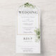 Alles in einer Hochzeitseinladung mit hübscher Blumentypografie und einem schicken Goldbogen. Die Einladung enthält eine perforierte RSVP-Karte, die für Sie individuell adressiert oder links als leere Karte für die Handschrift der Adressdaten Ihres Gastes verwendet werden kann. Entwickelt von Thisisnotme©