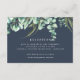 Unsere botanischen Eukalyptus-Empfang-Eintrittskarten auf Mitternachtsblau stimmen sich mit unserer Botanischen Eukalyptus Wedding Invitations Collection ab. Ein Spray aus Aquarelleukalyptus-Blätter und botanischem grünem Blattwerk runden das Design dieser Empfang-Informationskarte ab. Mit den Details Ihrer Hochzeitsfeier können Sie ganz einfach Ihre Wünsche erfüllen.