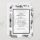 Dieses Design zeichnet sich durch rustikale Vintage Blume in Schwarz und Weiß aus. Das Blumendesign in Schwarz/Weiß kombiniert Vintage Blume mit einer undurchsichtigen weißen Schicht, einem schwarzen Rahmen und einem einfachen Text, um einen eleganten Look zu schaffen. Die elegante Anordnung auf einer Seite und die schwarz gegenüberliegende Seite mit den Namen der Braut und des Bräutigams vereinen ein einzigartiges Design. Die Verwendung von klassischer Typografie für den Wortlaut Text ergänzt das Design. Dieses Design ist ideal für jedes Hochzeitsthema. Das perfekte Design für alle Jahreszeiten. Es stehen auch passende Hochzeitsstilleriedateien und andere Hochzeitsformate zur Verfügung.