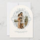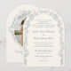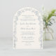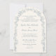 Erleben Sie Ihre Hochzeitsfeier mit unserer bogenförmigen Hochzeitseinladung, die das zarte Gleichgewicht von Vintagem Charme und rustikaler Eleganz verkörpert. Diese exquisite Einladung ist perfekt für Paare, die die Kunst des zeitlosen Designs zu schätzen wissen und eine faszinierende Einführung in Ihren besonderen Tag bieten. Die einzigartige Arch-Silhouette der Einladung sorgt für eine anmutige und zeitgenössische Präsenz, die Aufmerksamkeit erregt und als wertvoller Pfand für Ihre Gäste dient. Die zarte, blumengeschmückte Grenze, die sorgfältig aus Vintager Chinoiserie-Kunst gefertigt wurde, zeichnet sich durch zarte, staubblaue Blüten und blühendes Blattwerk aus. Dieses Design-Element fügt eine Touch von Vintager Eleganz und rustikalem Reiz hinzu, die Ihre Hochzeitsdetails mit Eleganz umrahmt. Der weiße Hintergrund aus hellem Porzellan bietet eine gepflegte und einladende Leinwand, die die Ästhetik insgesamt verbessert und die faszinierende Blumengrenze wunderschön hervorhebt. Die Einladung enthält einen skurrilen, handgeschriebenen Schriftart, der Ihrer Ankündigung eine persönliche und intime Touch verleiht. Diese Typografie ergänzt das rustikale Vintage Thema und lädt Ihre Gäste mit Wärme und Charme ein. Ideal für eine Vielzahl von Hochzeitsthemen, von Festlichkeiten auf dem Land bis hin zu eleganten Gartenveranstaltungen, ergänzt das zeitlose Design dieser Einladung jeden Stil und fügt eine Touch von Eleganz hinzu. Sie können Ihre Einladung personalisieren, indem Sie Ihre Wortwahl und Details auswählen, um sicherzustellen, dass sie den einzigartigen Kern Ihrer Liebe und den besonderen Tag, den Sie sich vorstellen, widerspiegelt. Auf der Rückseite finden Sie ein ovales Fotomodell mit passenden Vintagen Blumendekorationen und Platz für weitere Details, wie z.B. Ihre Hochzeitswebsite, weiter unten. Lade deine Lieben ein, mit unserer dustig blauen, Vintagen Chinoiserie Hochzeitseinladung an der Freude deiner Gewerkschaft teilzunehmen. Lass dieser Einladung ist der perfekte Auftakt zu einem Hochzeitstag voller Liebe, Freude und unvergessliche Erinnerungen.