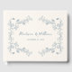 Elegantes rustikales Blumenband Hochzeitsgast-Buch mit einem staubblauen Vintagen botanischen Rahmen-Design.