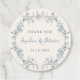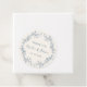Elegante rustikale Gastgeschenk Hochzeit-Tags mit Blumenmuster und einem staubblauen Vintagen Kranzkranz-Design.