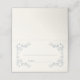 Elegante rustikale Blumenstrauß Hochzeitskunst Platzkarte mit einem staubblauen Vintagen botanischen Rahmen Design.