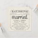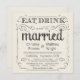 Essen, Trinken und Verheiratet sein - Vintage rustikale einladende Landheiraten im rustikalen Stil - Wirble, lockige Rollen und altmodische Typografie auf antiken Elfenbeincreme weißem Pergament Hintergrund. Fügen Sie Ihre Namen und Hochzeiten Informationen in dieser leicht zu verwendenden Vorlage. Elegante, aber lustige und whimsical, chalkboard Stil Skript-Kalligrafie kann für Ihr formales oder semiformales Retro-Hochzeitsthema modifiziert werden. Lässiger moderner Stil ist ideal für moderne Hochzeiten mit einer lustigen Touch von raffiniertem Charme für Braut und Bräutigam. Bitte kontaktieren Sie uns für Hilfe bei der Anpassung, wenn Sie zusätzlichen Platz für Ihre Hochzeitsdetails benötigen. Andere Größen und Chalkboard-Stile, zusammen mit Koordinierungsstilen für Verlobungsfeier und Paare Dusche.NACHRICHT: Dieses Produktdesign ist nur für eckige Karten Set-Up - es ist extra Porto erforderlich.