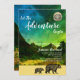 Rustikale Waldbären und Berge ließ das Abenteuer mit der Baby-Dusche-Einladung, mit einem Compas und spazierenden Baby-und-Mama-Bären mit einer üppigen Berglandschaft Hintergrund und Schrift. Passen Sie Ihre Daten an. Die Rückseite, wenn die Karte die Berglandschaft und die Worte: die Reise beginnt.