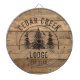 Rustikales Thema Dart personalisiert mit Ihrem Kabine, Seehaus, Lodge oder Mietobjekt und feststehendem Datum. Das Design zeigt eine Wildnis Wald Kiefern landschaftliche Bild vor einem Land Holz planken Hintergrund. HILFE: Für Hilfe bei der Modifizierung oder Personalisierung des Designs, bei Farbänderungen, bei der Übertragung des Designs auf ein anderes Produkt oder wenn Sie die Dinge koordinieren möchten, wenden Sie sich bitte an den Designer, BEVOR Sie die Bestellung über die Registerkarte Zazzle Chat MESSAGE unten durchführen, oder per E-Mail an makeitaboutyoustore@gmail.com.