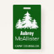 Machen Sie Ihren Mitarbeitern mit diesen minimalistischen Abzeichen glückliche Camper! Moderne, grün-weiße Bäume bilden individuelle Name Abzeichen. Ideal für Campingberater, für Aktivurlauber im Freien oder für Begleitpersonen für Outdoor-Ausflüge.