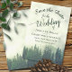 Diese wunderschönen Save the Date sind ein guter Weg, um Freunden und Familie lassen, die über Ihre kommende Hochzeit wissen. Das Design besticht durch eine rustikale Bergszene mit einem grünen Pinienwald, der von Nebel oder Nebel umspült wird. Der kalligraphische Text mit der Schnappschreiheit verleiht dem Bild Eleganz. Ideal für eine Hochzeit in Urlaubsort im Freien, im Wald oder in den Bergen.