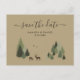Vervollständigen Sie Ihre waldbezogene Hochzeitsfeier mit dieser malerischen Hochzeit und sparen Sie die von einem Junggesellen und einem Tauchen im Wald inspiriert Dattelkarten. Matching-Elemente verfügbar.