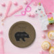 Papierplatten der rustikalen Leinwandbärn-Babydusche. Schaffen Sie Ihre eigene personalisierte, rustikale Leinwandbabyduschenart mit einem schäbigen Waldwaldtierthema, alten Leinwandbeschaffenheits-Blickhintergrund mit Schatten des schwarzen Bären die Mitte der Aufmerksamkeit. Auf Bären ist kundengebundene "Namens" Babyparty in den wunderlichen Buchstaben, die handgeschrieben schauen. Datum unten. Liest "danken Ihnen" an der Spitze in der traditionellen Art, gotische Schriften. Kundenspezifischer Leinwandbärn-Babyduschen-Teller bringt rustikale Waldtier-Babyduschenarten, Zoothemaduschen und Jungenbabyduschen-Partyversorgungen zusammen. Zusammenpassende Bärnpapierservietten sind in unserem Zazzle.com/angela65*-Speicher verfügbar sowie andere Jungen-Babypartyversorgungen und -dekor.