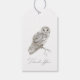 Rustikaler Wald Owl Wasserfarbenkalligraphie Geschenketiketts. Kalligrafisches Textbild "danke" kann entfernt werden.