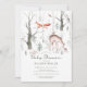 Schönes rustikales Babydesign mit einer Waldszene mit einem Hirsch, Igel, Fuchs, Vogel & Eule Set auf einem Waldhintergrund. Besuchen Sie unseren Shop und sehen Sie sich unsere gesamte Kollektion von Waldtierdesign an.