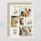 Rustikale Weihnachtskarte JOY mit drei anpassbaren Foto-Slots, die sich perfekt eignet, um Familien-, Begleiter- oder Paarportraits auf festliche und herzliche Weise zu präsentieren. Das elegante Design zeichnet sich durch große Serifenbriefe "J", "O" und "Y" aus, die in einer weichen, grünen Aquarellstruktur mit zarten Magnolienblüten, Kiefernästen und subtilen Urlaubspflanzen gehalten sind. Fügen Sie oben Ihren eigenen Gruß und unten Ihren Namen in einem serifenlosen Schriftart hinzu, der das klassische Aussehen miteinander verbindet. Das Gesamtbild schafft eine ausgewogene Mischung aus natürlicher Eleganz und fröhlicher Feier, ideal für Familien, die ein modernes Urlaubshotel Liebe haben. Auf der Rückseite der Karte befindet sich ein einfaches, grün gesäumtes Hintergrund. Egal, ob Sie Schnappschüsse von Kindern, Haustieren oder fröhliche Familienmomente mitbringen, diese stilvolle Weihnachtskarte bringt jedem Urlaubsgruß, der an Liebende geschickt wird, eine warme und personalisierte Touch. Erhältlich als gedruckte Karten oder als sofortiger digitaler Download.