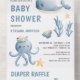 Erleben Sie Ihren Aufenthalt mit dieser eleganten Babydusche zum Thema Wassersport, die mit einem niedlichen Segelboot und bezaubernden kleinen Meerestieren mit abnehmbarer Gewinnerkarte aufwartet. Fügen Sie einfach Ihre Veranstaltungsdetails zu dieser einfach zu bedienenden Vorlage hinzu, um sie zu einer einmaligen Einladung zu machen.