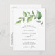 Rustikale Save the Date Postkarte mit einem schlichten Design mit einem grünen Aquarell mit großen Blätter auf weißem Hintergrund. Im Folgenden finden Sie Ihre Details in einem weichen Grau. Die Rückseite hat Ihre persönliche Nachricht und Rücksendeadresse für einfaches Mailen. Ein elegantes botanisches Design, das sich ideal für ein Fest im Sommer eignet.