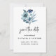 Rustikale Wasserfarben-Illustration Blaues Blumenb Save The Date