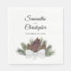 Diese wunderschönen Servietten werden Ihren Empfang, Ihr Probe-Dinner oder andere Hochzeitsveranstaltungen mit Stil und Klasse bereichern. Sie zeichnen sich durch ein rustikales und dennoch elegantes Design aus, mit einem handgemalten Aquarellhaufen von Pinecones und Kiefernästen in den Farben Waldgrün und Kastanienbraun. Es gibt Platz für die Namen des Paares und das Hochzeitstag. Ideal für eine Hochzeit im Freien, im Winter oder im Urlaub.