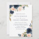 Mit dieser eleganten, blumengeschmückten Einladung laden Sie Familie und Freunde ein. Es ist mit einem Blumenstrauß in Aquarelltönen aus Marineblau und rosafarbenen Blume mit grünen Akzenten ausgestattet. Personalisieren Sie diese durch Hinzufügen von Namen, Datum, Uhrzeit, Veranstaltungsort, Adresse und anderen Veranstaltungsdetails. Sie können die Rückseite der Einladung in ein Foto oder ein anderes Bild ändern. Diese blumengeschmückte Hochzeitseinladung ist perfekt für Herbst- und Winterhochzeiten.