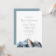 Diese einfache, rustikale Hochzeitseinladung besticht durch eine Aquarelllandschaft in einer Gebirgslandschaft in Blautönen, Grau und Rost. Personalisieren Sie es mit den Namen der Braut und des Bräutigams in der handgeschriebenen handgeschriebenen Holzkohle-Schrift und dem restlichen Text in Serif-Schriftart. Die Rückseite der Karte ist eine koordinierende Schattierung von massiv blau grau.