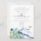Diese exquisite Hochzeitseinladung zeigt ein lässiges Aquarellbild einer Wald- und Berglandschaft mit geschmackvoll einfachen Details und rustikalem Kalligrafietext. Die Rückseite ist in einer ruhigen, staubblauen Farbe gehalten. Mit zeitloser, aber zeitgemäßer Anziehungskraft erschließt diese Einladung perfekt das Wesen Ihrer abenteuerlichen Wildnishochzeit.