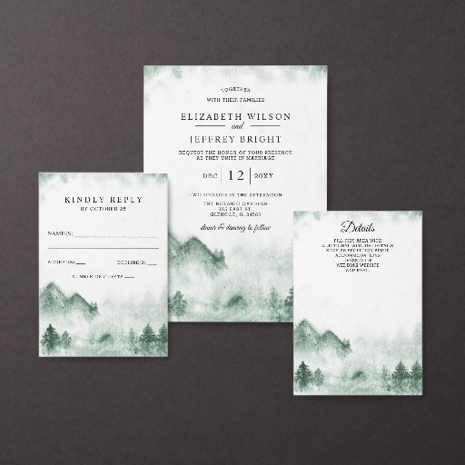 Watercolor Mountains Pine Winter Wedding Designt von Maria G