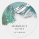 Rustikale Wasserfarbengebirge Pine Winter Wedding Runder Aufkleber