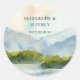 Rustikale Wasserfarbengebirge Winterhochzeit am Se Runder Aufkleber