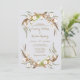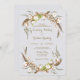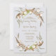 Elegante rustikale Hochzeitseinladung mit Blumenkranz aus Aquarell und Fasanfedern auf hellgrauem Hintergrund.