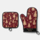 Rustikale Weihnachten Evergreen Trees Red and Gold Ofenhandschuh & Topflappen-Set