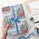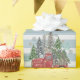 Rustikale Weihnachtsbaume Blau Streifen Geschenkpapier