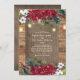 Rustikale rote Poinsettias Weihnachtsblüte mit Grün, funkelnde Saitenleuchten und Laternen auf Burlap und Stallenholz Einladung. Kontaktieren Sie uns für Hilfe bei der Anpassung oder um passende Produkte anzufordern.