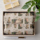 Einzigartiges Weihnachtsdesign mit Collage von rustikalen Dorfszenen aus Wäldern, Hütten und Windmühlen bei Sonnenuntergang. Vignetten werden mit zeichne Blume und künstlerisch bemalten Gängen, Apfelblüten und Efeu in warmen Rost, Orange, Pfirsich, Korallen, Gold und Jäger grün auf dem Kessel und festliche Weihnachtswünsche in eleganter verzierter Goldtypografie verziert. Das Muster ist nahtlos und kann in der Größe nach oben oder unten skaliert werden.
