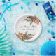 Rustikale Weihnachtsduschplatte mit Aquarellbildern von Winterbotanicals, Mistletoe, Kiefernzweig, Beeren, Orange, etc. Im Text steht "Eine kleine, kleine Babydusche." Geschlechterneutrales Design.