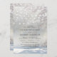 Elegante rustikale Weihnachtseinladungen mit gefrorenem, weißem Waldboden, weißem Overlay, Saiten-Tinkle-Leuchten und einer leicht zu personalisierenden Hochzeitsvorlage.