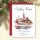 Unsere Einladung zum Weihnachtsessen beinhaltet ein Set zum Weihnachtsessen mit Kerzenstock und heiligen Ästen. Die Einladung ist einfach und rustikal mit weißem Hintergrund und schwarzem Text.