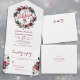 Roter Bordeaux und weißer blühender botanischer Kranz mit dunkelgrünen Tannenästen und saisonalem Laub machen ein charmantes rustikales Siegel erschwinglich und senden Hochzeitseinladung Vorlage mit RSVP-Karte inklusive. ++++++++++++++++ Die Einladung ist ideal für den Winter blühende rustikale Weihnachtsfeiern im traditionellen Stil.
