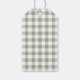 Maßgeschneiderte Geschenketiketten im rustikalen Bauernhausstil, vorn ein Weihnachtsbaumkrautdesign, hinten ein Salbei-Büffel-Karo.