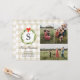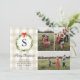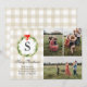 Diese rustikale Weihnachtskarte ist für drei Fotos konzipiert und enthält ein kariertes Büffel in Cremetönen, einen Aquarellkranz und einen kleinen roten Bogen. Die Rückseite der Karte ist ein karierter, cremefarbener und weißer Büffel. © 2021 Tea Olive Co.