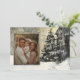 Diese personalisierte Weihnachtskarte bietet Platz für ein herzzerwärmendes Foto aus der Familie, gerahmt mit einem rustikalen Holzrahmen. Neben dem Bild befindet sich ein wunderschön dekorierter Weihnachtsbaum, der mit Schnee bedeckt ist, Set vor einem schneebedeckten Hintergrund. Die Nachricht auf der Karte lautet: "Herzliche Wünsche für die besten und hellsten Freuden der Saison! Mit der Liebe aus, Ihr Familienname in einem eleganten, fließenden Skript geschrieben. Das Design verbindet warme, goldene Farbtöne mit winterlicher Landschaft und schafft eine gemütliche und festliche Atmosphäre, die sich perfekt für den Urlaub eignet.