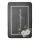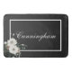 Dieses Design ist einfach, aber macht eine Aussage, mit dem monogramm Familiennamen in Weiß auf einem weichen schwarzen Hintergrund. Ein weißer Rahmen ist mit einem rustikalen Strauß aus Kiefern und winterweißen Blume dekoriert. Diese Badematte empfängt Ihre Ferien- und Weihnachtsgäste in einem schönen, schlichten Stil. Erstellt von der einfachen Farmhouse Press.