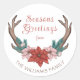 Schicken Sie Frohe Festtage zu Ihren Lieben, Ihrer Familie und Ihren Freunden während dieser Ferienzeit. Ein niedlicher Strauß von Poinsettia Blume mit Kiefernästen hängen an einem Set von Hirschgeweihen in einem rustikalen Landstil. Personalisieren Sie Ihren Namen unten für ein individuelles Gefühl.
