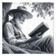 Diese rustikale Schwarz-Weiß-Abbildung zeigt einen bärtigen älteren Mann in einem breit gegrabenen Hut, der unter einem Baum behutsam liest. Mit seinem Charme der alten Welt und seinem Pioniergeist bringt dieses Stück Wärme, Reflexion und Geschichtenerzählen in Ihre Zuhause. Ein perfekter Wandakzent für rustikale Kabinen, Studios oder Leseecken, er feiert den anhaltenden Power von Büchern und Wissen.