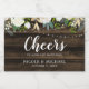 Personalisieren Sie diese rustikalen Blumenweinetiketten für Ihre Gastgeschenke Hochzeiten. Das Design zeichnet sich durch eine Aquarellgrüne und weiße Blume mit Saitenbeleuchtung und einen dunklen Holzhintergrund mit modernem Schriftart aus. Designs sind flache gedruckte Illustrationen/Grafiken - NICHT AKTUELLE GOLD FOIL.