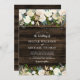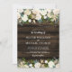 Elegante weiße Aquarelltöne und Grünpflanzen schmücken diese rustikalen Hochzeitsfeiern. Das Design umfasst Blume mit Stringleuchten und einen dunklen Holzhintergrund mit einem modernen Script-Schriftart. Designs sind flache gedruckte Illustrationen/Grafiken - NICHT AKTUELLE GOLD FOIL.