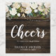 Mit diesen rustikalen Etiketten können Sie Ihre Hochzeitsflaschen individuell gestalten. Das Design zeichnet sich durch eine Aquarellgrüne und weiße Blume mit Saitenbeleuchtung und einen dunklen Holzhintergrund mit modernem Schriftart aus. Designs sind flache gedruckte Illustrationen/Grafiken - NICHT AKTUELLE GOLD FOIL.