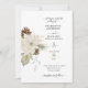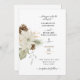 Diese rustikale Hochzeitseinladung ist sauber und dekorativ. Sie besticht durch eine hübsche, weiße Blume mit Pinecones-Akzent auf weißem Hintergrund.