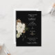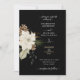 Diese rustikale Hochzeitseinladung ist sauber und dekorativ und bietet eine hübsche weiße Blume mit pinecones Akzent auf schwarzem Hintergrund.