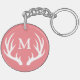 Weiße Hirsche antlers Silhouette und weißer monogramm Buchstaben rosa Schlüsselanhänger.
