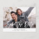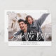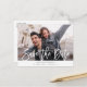 Einfache Hochzeit des Fotos speichern Sie die Dattelkarte mit weißer Schrift. Fühlen Sie sich frei, um das Foto und Text zu personalisieren.
